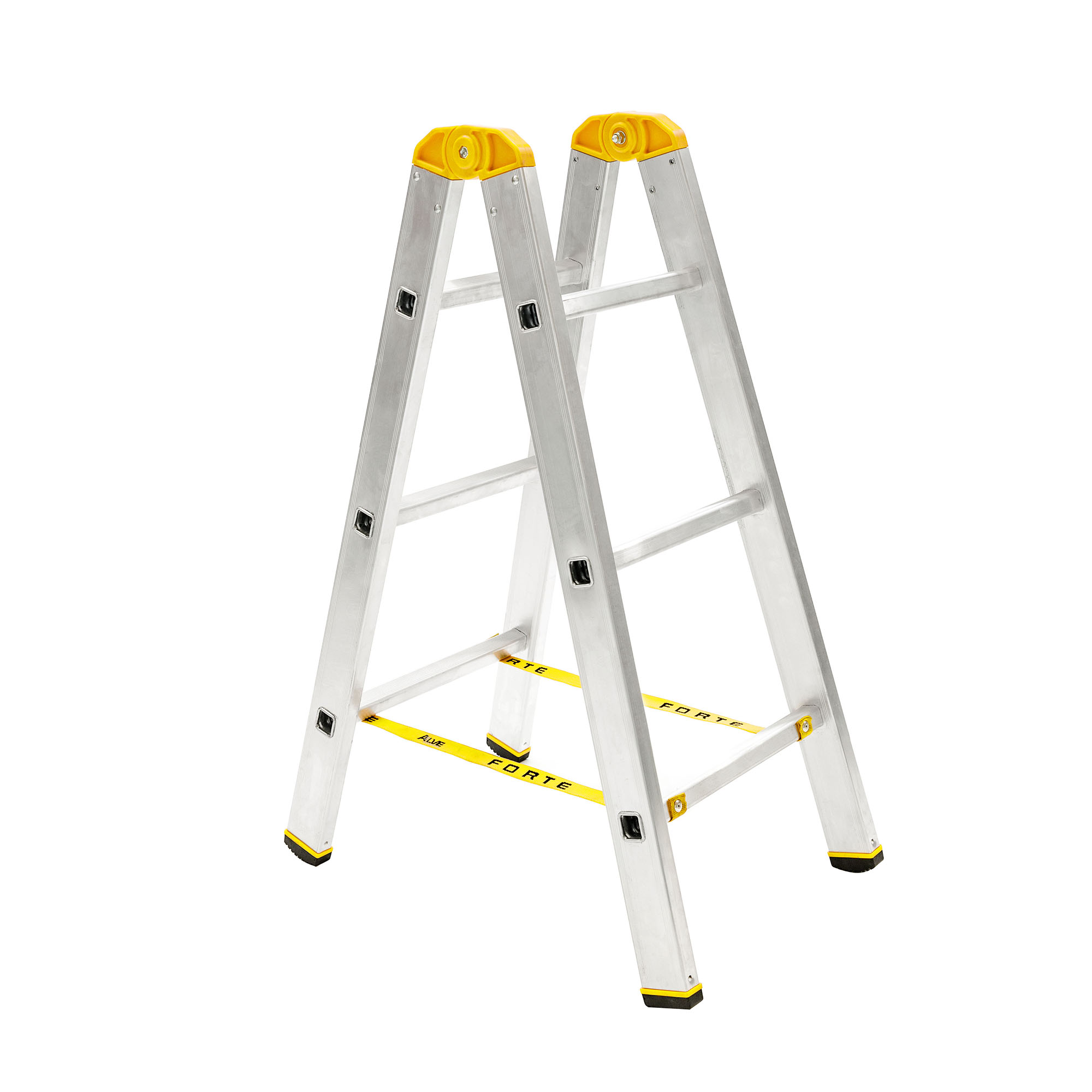 Scara dubla Forte Plus este ideala pentru lucrari de scurta durata in gospodariesau medii profesionale.Fiind prevazuta cu trepte pe ambele parti, permite acces facil din ambele directii si asigura stabilitate optima.