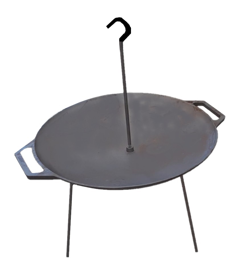 Disc din fonta proiectat pentru a fi utilizat cu setari de gatit în aer liber sau în camping. are o suprafata rotunda robusta sustinuta de trei picioare si include un mâner central pentru transport si pozitionare usoara. Ideal pentru gratar sau gatit la foc deschis, acesta combina durabilitatea cu portabilitatea.