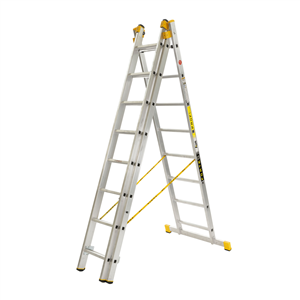 Scara combinata din aluminiu cu trei sectiuni, este alegerea ideala pentru utilizari multiple,atat in interior,cat si in exterior.Constructia solida din aluminiu usoara  si durabila  asigura siguranta si stabilitate.Se poate utiliza ca si scara rezemata, culisanta sau dubla tip A,dubla cu elemntul ingust prelungit in forma de litera Y intors.