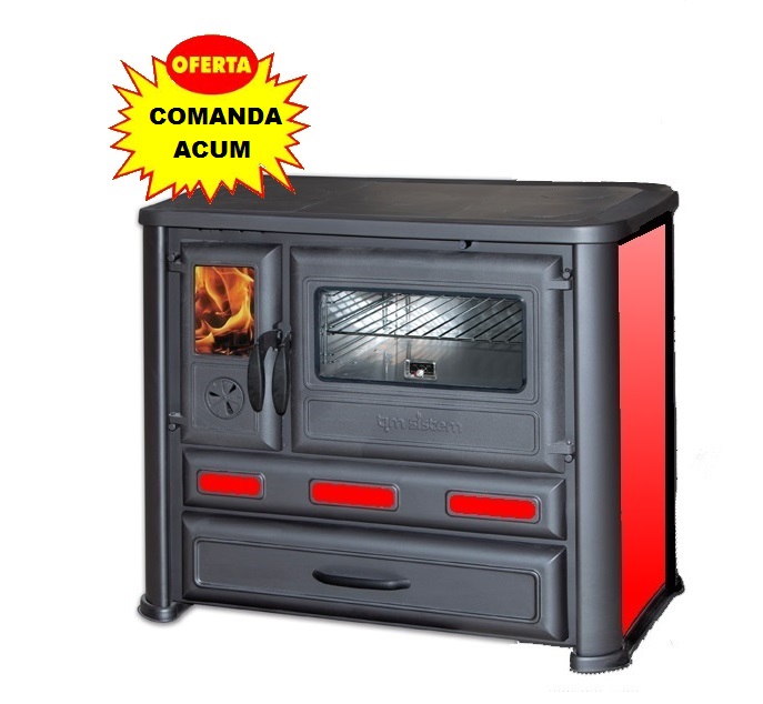 Soba emailata cu plita din fonta. Usile sunt din fonta, usa cuptorului este cu sticla ignifuga, email de inalta calitate.
